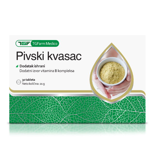 PIVSKI KVASAC sa vitaminom C karakteriše visok sadržaj kompleksa B vitamina, kalijuma, kalcijuma, gvožđa, fosfora. Uloga pivskog kvasca se ogleda u održavanju metaboličkih i fizioloških procesa neophodnih za normalno funkcionisanje organizma. Tablete pivskog kvasca posebno su delotvorne kod: jačanja ukupnog imuniteta organizma, pravilnog rasta i razvoja dece, starijih osoba, osoba koje imaju probleme s kožom, umanjenim apetitom, osoba koje konzumiraju alkohol i cigarete, regulacije rada jetre, poboljšanja krvne slike, reumatskih bolova, boljeg rada probave. Dodatak vitamina C dodatno pojačava imunitet i otpornost organizma.