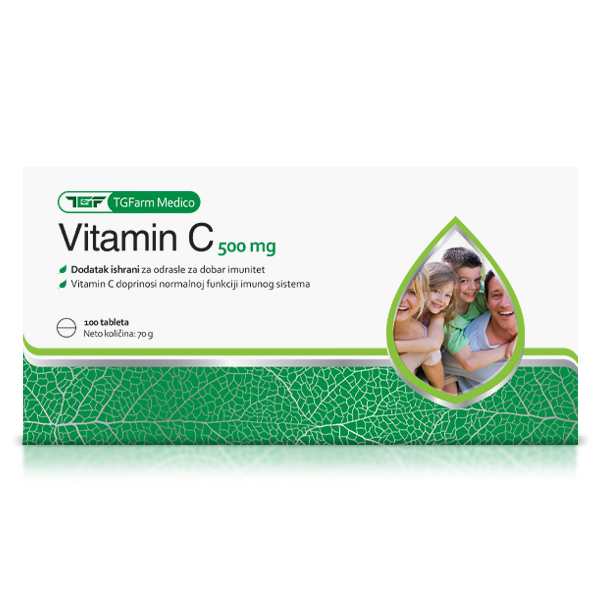Dodatak ishrane za odrasle, preporučuje se kod oslabljenog imuniteta, kod prehlade I infekcija, u kombinaciji sa preparatima gvožđa. Deficit vitamina C se javlja kao posledica lošeg načina ishrane, stresa i izloženosti štetnim agensima spoljašnje sredine. Fiziološke funkcije vitamina C: - Najvažniji hidrosolubilni antioksidans - Učestvuje u sintezi kolagena i drugih komponenti vezivnog tkiva - Deluje imunoprotektivno - Poboljšava resorpciju gvožđa održavajući ga u redukovanom stanju