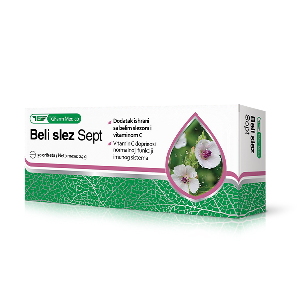 BELI SLEZ SEPT oriblete su dijetetski suplement koji efikasno ublažava tegobe izazvane bronhitisom i povoljno deluje na sluznicu gornjih delova disajnih organa. Zaštitno dejstvo proističe od sluzi bršljana, koja formira zaštitni film u usnoj duplji i ždrelu, kao i od etarskih ulja anisa i eukaliptusa. Vitamin C deluje stimulativno na imune funkcije organizma. Ovaj proizvod ublažava napade suvog kašlja i smiruje ga do potpunog prestanka. Ledena svežina mente efikasno smanjuje nadražaje u usnoj šupljini, grlu i ždrelu olakšavajući disanje. Pročišćava disajne puteve i pospešuje iskašljavanje bronhijalnog sekreta.